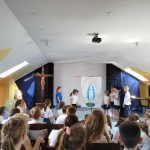 Maryja znajduje różne sposoby by wejść tam, gdzie Sama chce i przyjść do Swoich dzieci. Tym razem 07 czerwca i 16 czerwca 2019 r. zapragnęła zagościć w szkole, którą prowadzą Siostry Felicjanki w Warszawie. W szkole uczą się dzieci od klasy 1 do 8 podstawowej. Apostolstwo w tym miejscu poprowadziły: s. Izabela M. i s. Barbara M. Dzieci były podzielone na 3 grupy wiekowe: 1-3, 4-7 i 8 klasy. Siostry starały się przybliżyć dzieciom postać św. Maksymiliana, ukazując Go jako gorliwego Rycerza i czciciela Niepokalanej. Następnie Siostry mówiły również o Samej Maryi jako kochającej nas Mamie oraz Osobie, której można oddać się z ufnością i bez zastrzeżeń.
